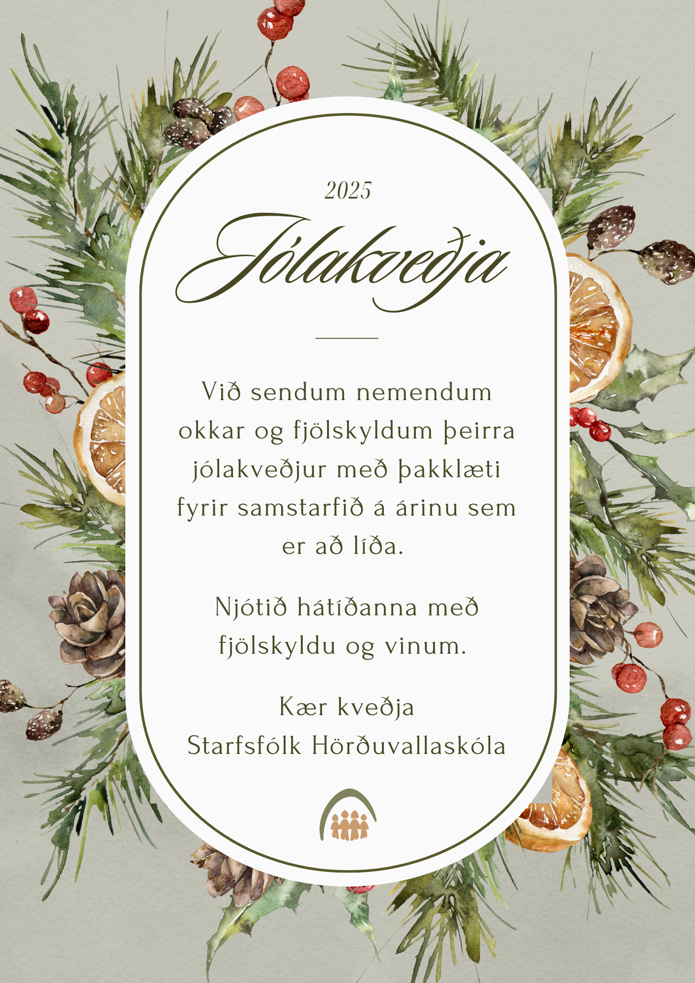 Við sendum nemendum okkar og fjölskyldum þeirra jólakveðjur með þakklæti fyrir samstarfið á árinu sem er að líða.